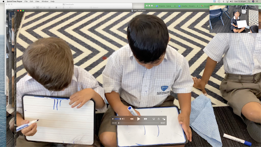 We have also been using the whiteboards as part of our ‘Explicit Direct Instruction’ school wide pedagogy. This term, we have been steadily learning how to break up words into syllables. Students have been doing various actions and activities to help them learn how to count the syllables that make up different words. In the images below, you can see how they represent each syllable with a tally mark.