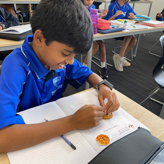 Recently, students participated in a cookie excavation activity to explore archeology and the tools and techniques used in it. With a cookie as their dig site, they used toothpicks as tools to excavate chocolate chip ‘artefacts’. Throughout the activity, students used a grid to accurately record where their artefacts were found and discussed the importance of taking care when handling items from the past.