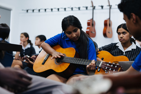 Our Year 8 students have been rocking out on guitars this term! Students had the opportunity to learn the four chords of pop. Our class guitarists also got to jump in and demonstrate their leadership skills, helping their classmates learn new chords.