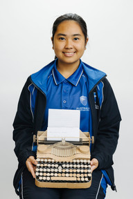 Pictured below are Charlize, Ashley and Chris with their models, as well as a 3D printed model telephone made by Nicholas. Charlize built a model of a typewriter out of wood, and painstakingly handmade each key out of dowels, washers and nuts. Similarly, Ashley built a model typewriter predominantly out of cardboard, skewers and foam. Both students spoke about the importance of typewriters in influencing the rise of women in the workforce, as well as the mechanical and tactile nature of this particular invention appealing to them.