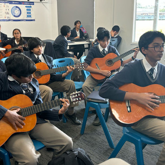 Year 8E enjoyed their first guitar practical lesson in Music recently. Students began the lesson by learning about how to hold, tune and play the instrument safely and properly. Our budding guitarists spent the lesson practising the chords C, G, Eminor and D. Towards the end of the lesson the entire class did a mini performance playing along to Ed Sheeran's song 'Perfect'. Those without guitars joined in by singing. 8E students are commended on their respectful, proactive and collaborative nature!